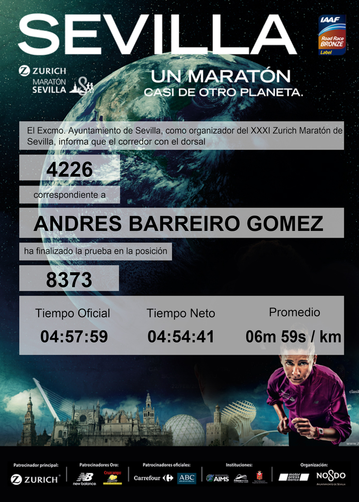 Aquí temos un vídeo da entrada de Andrés Barreiro, xunto co seu fillo Manu, na maratón de Sevilla.
